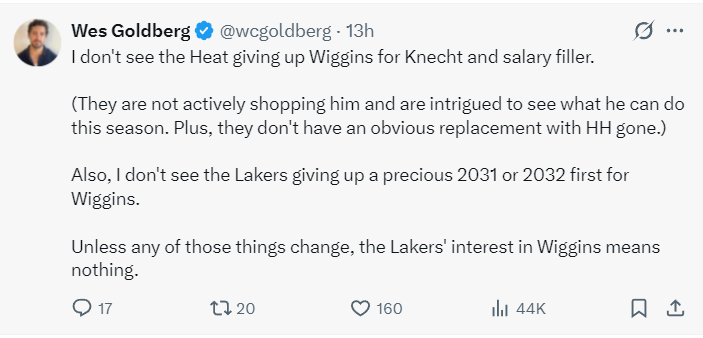 另外,我认为湖人队也不愿意为了交易得到维金斯而付出2031年/2032年的首轮签,除非湖人愿意送出首轮签,不然就算湖人对维金斯有意也没有任何实际意义。